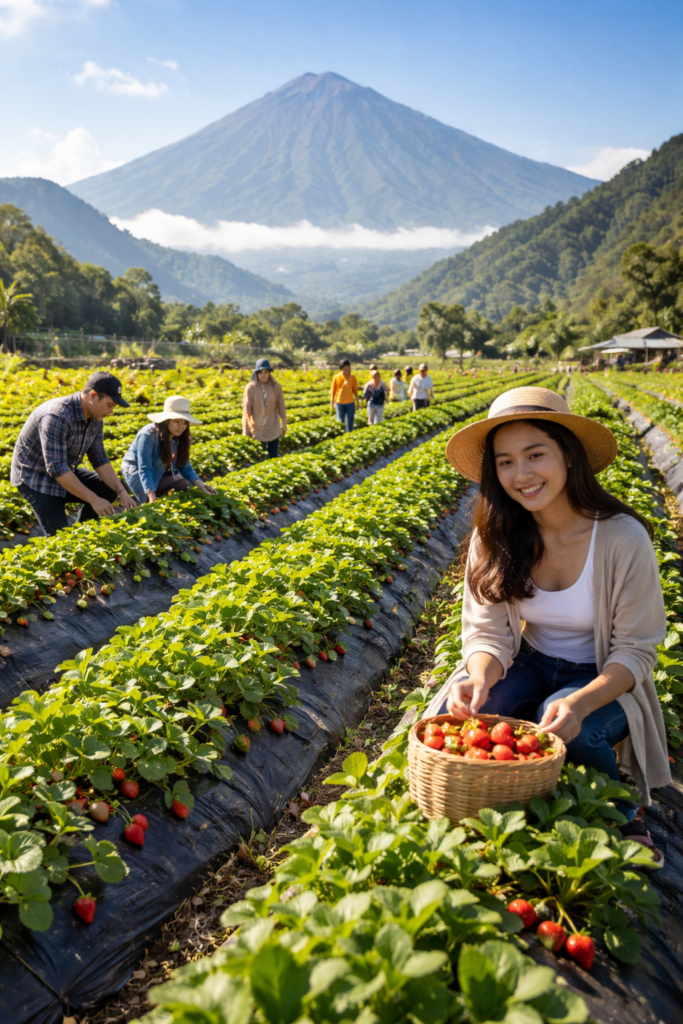 Bukit Selong, Kebun Strawberry, Lombok Timur, Pusuk Sembalun, Taman Bunga