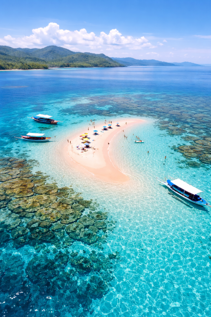 Paket snorkeling privat di Lombok Timur yang menggabungkan keindahan Pantai Pink dan spot snorkeling favorit Gili Petelu.